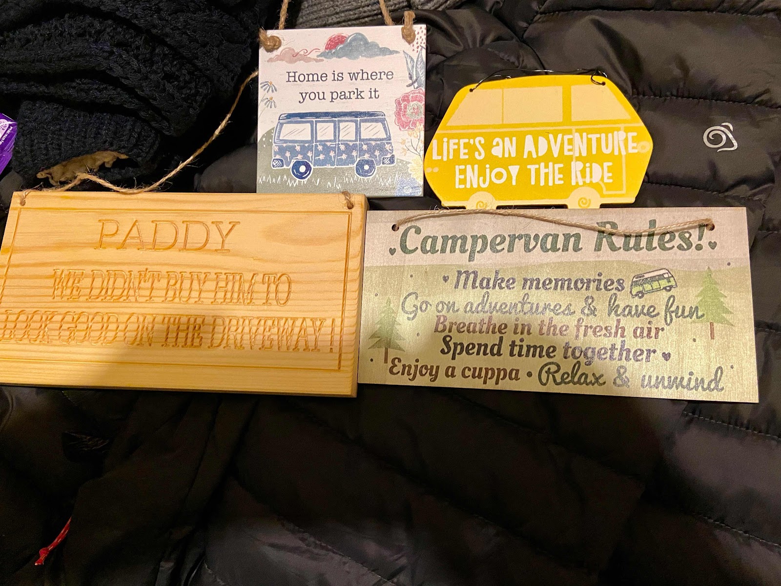 I am currently sitting on my sofa, reflecting on where the journey has taken us. I’m listening to the sounds of hubby adding a few things to the campervan we bought in September……. a roll up/down thermal screen for the back window to stop any drafts from chilling my bum on winter nights away, and some hooks for the fun signs we’ve been given by those celebrating with us…...
